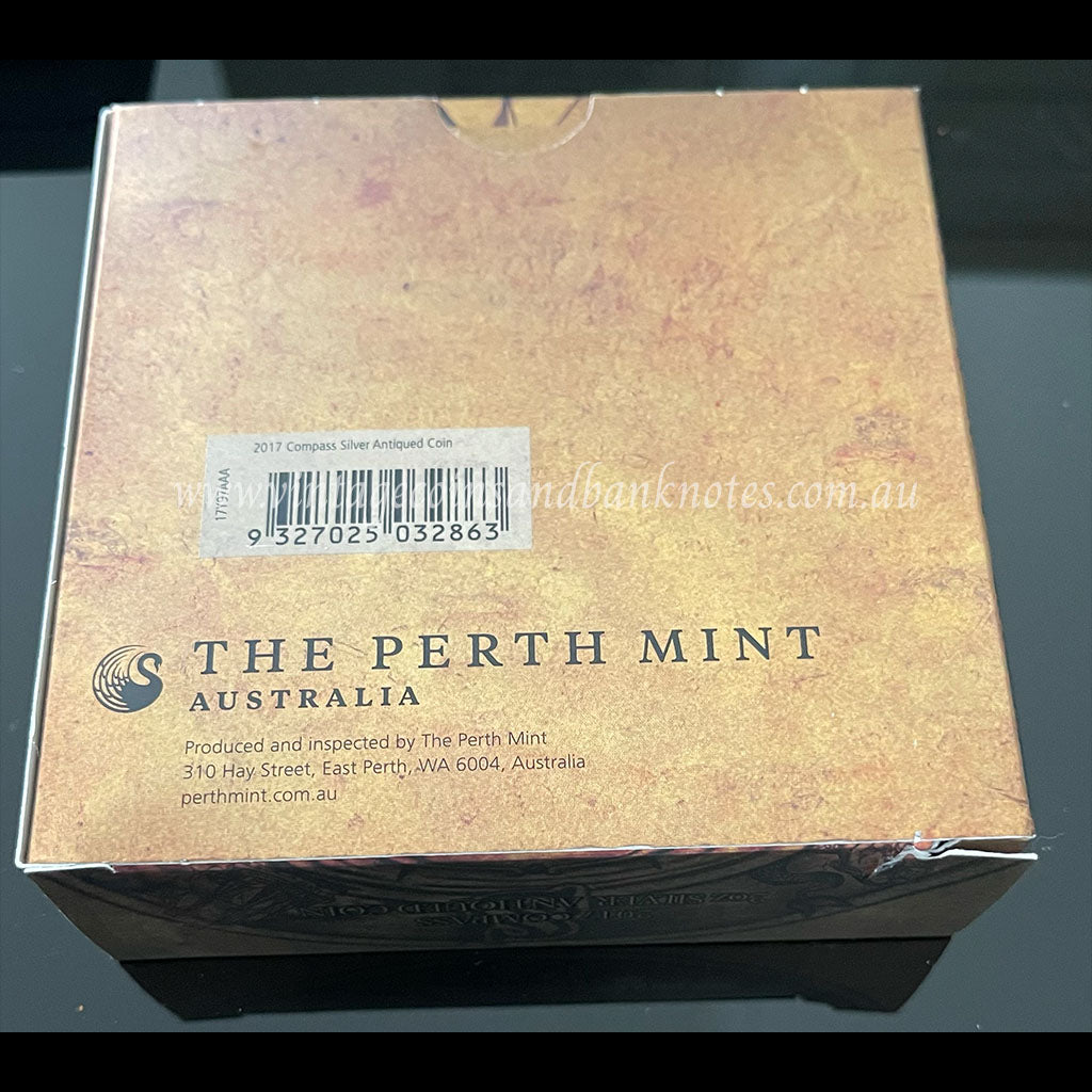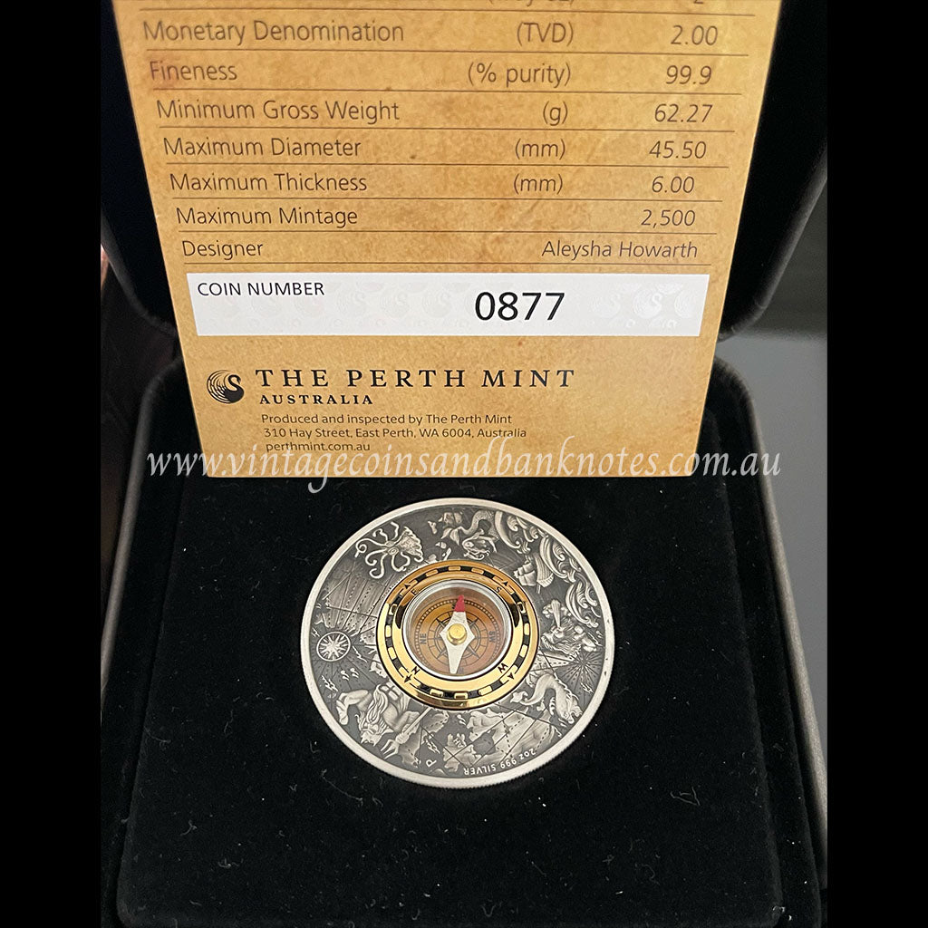 2017 $2 Compass 2 oz Silver Antiqued Tuvalu Proof Coin - Perth Mint