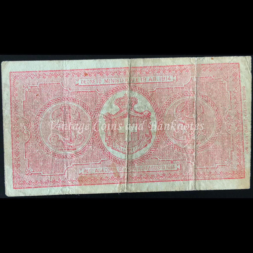 Italy 1939 2 Lire VG Condition: Heavily circulated. Missing bottom left corner Grade: VG Price: $22 Ref: KM 27